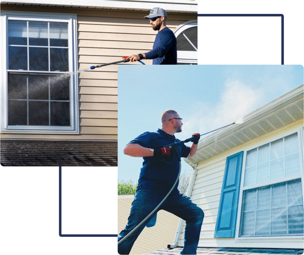 Our team cleans most of the external parts of a house. We cover the front and back of the property from the top of the roof to the bottom of the path.