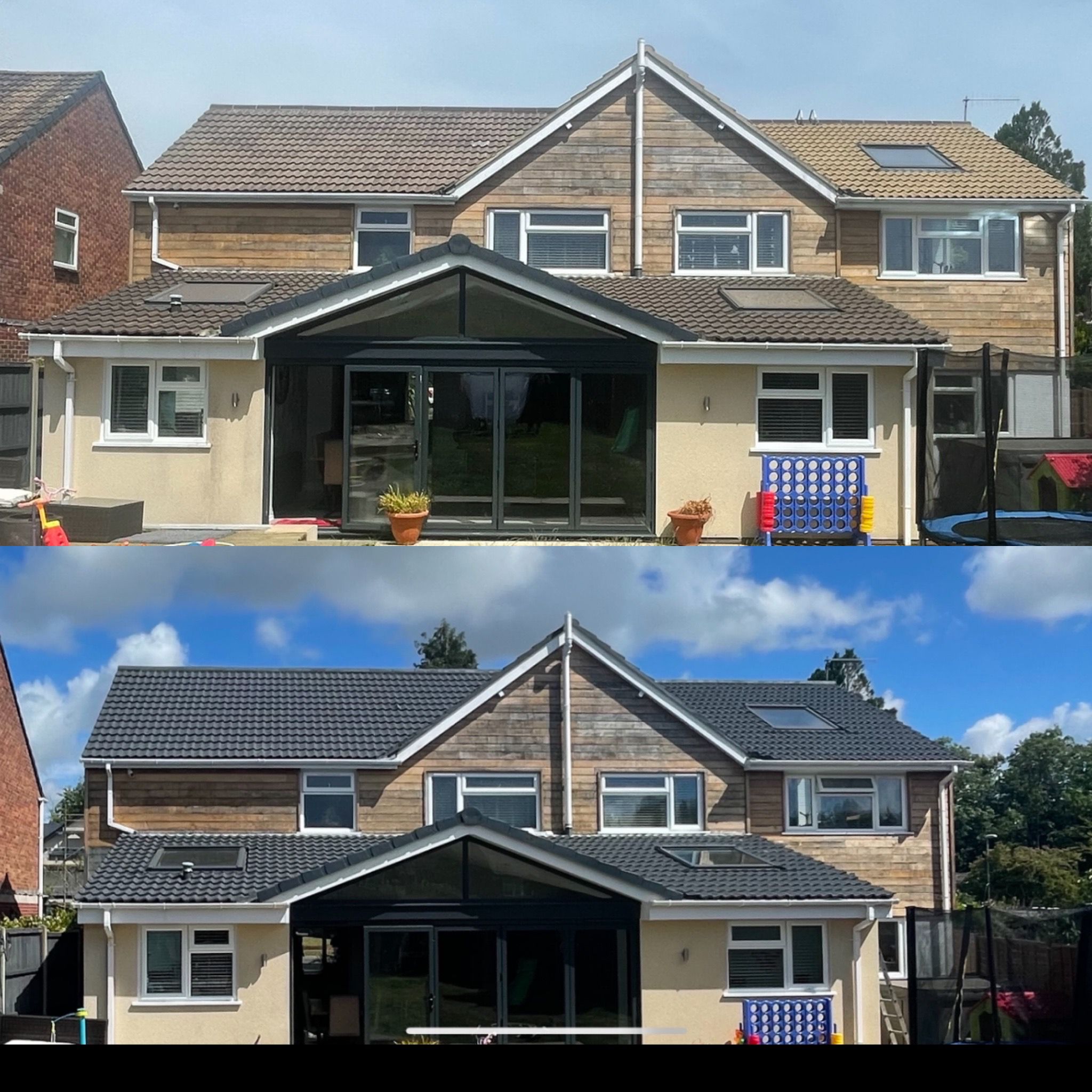 Our team cleans most of the external parts of a house. We cover the front and back of the property from the top of the roof to the bottom of the path.